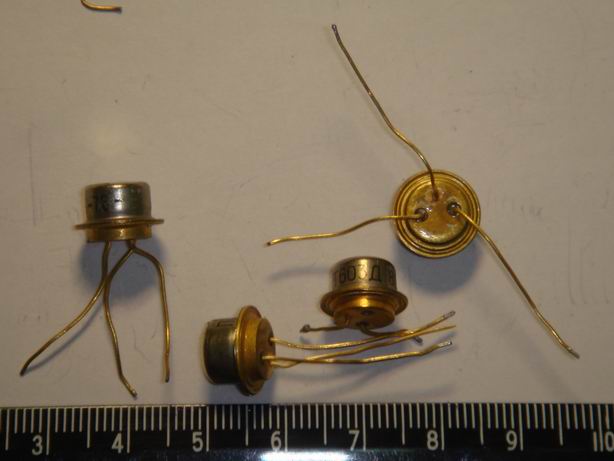 Мы принимаем российские и импортные транзисторы с содержанием драгметаллов на лом, цена определяется с учетом типа и года выпуска деталей. Наиболее дорогими являются радиодетали советского периода. У многих наличие золота можно определить визуально - они могут иметь выводы желтого цвета, также позолоченной может быть нижняя часть корпуса.